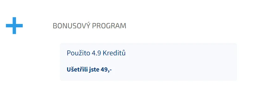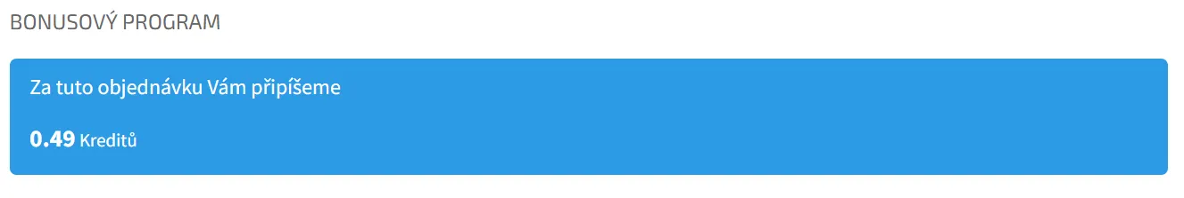 The element contains the current customer account, information about the points earned for this order and a field for entering credits from which the order discount is calculated. The discount is made internally by applying a discount coupon (it is necessary to have discount coupons activated on the e-shop). Credits also cannot be combined with another discount coupon. In this case, the customer is informed at the appropriate places in the basket (entering the discount coupon or entering the credits).